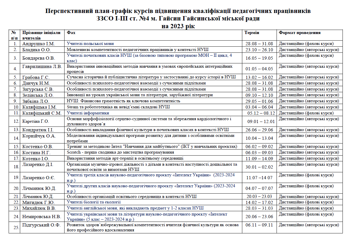 Підвищення кваліфікації педагогічних працівників
