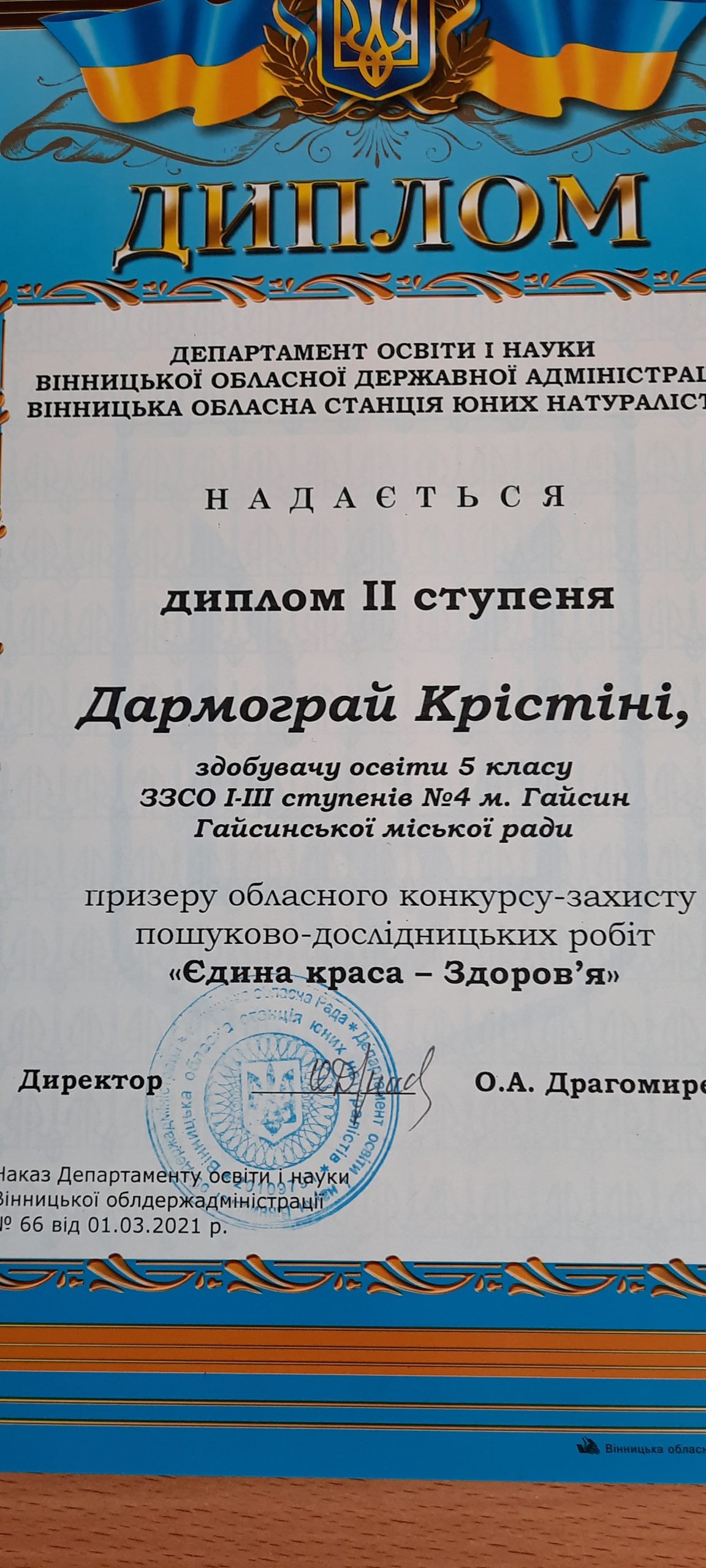 Список здобувачів освіти, зарахованих до 1 класу ЗЗСО І-ІІІ ступенів №4 м. Гайсин Гайсинської міської ради