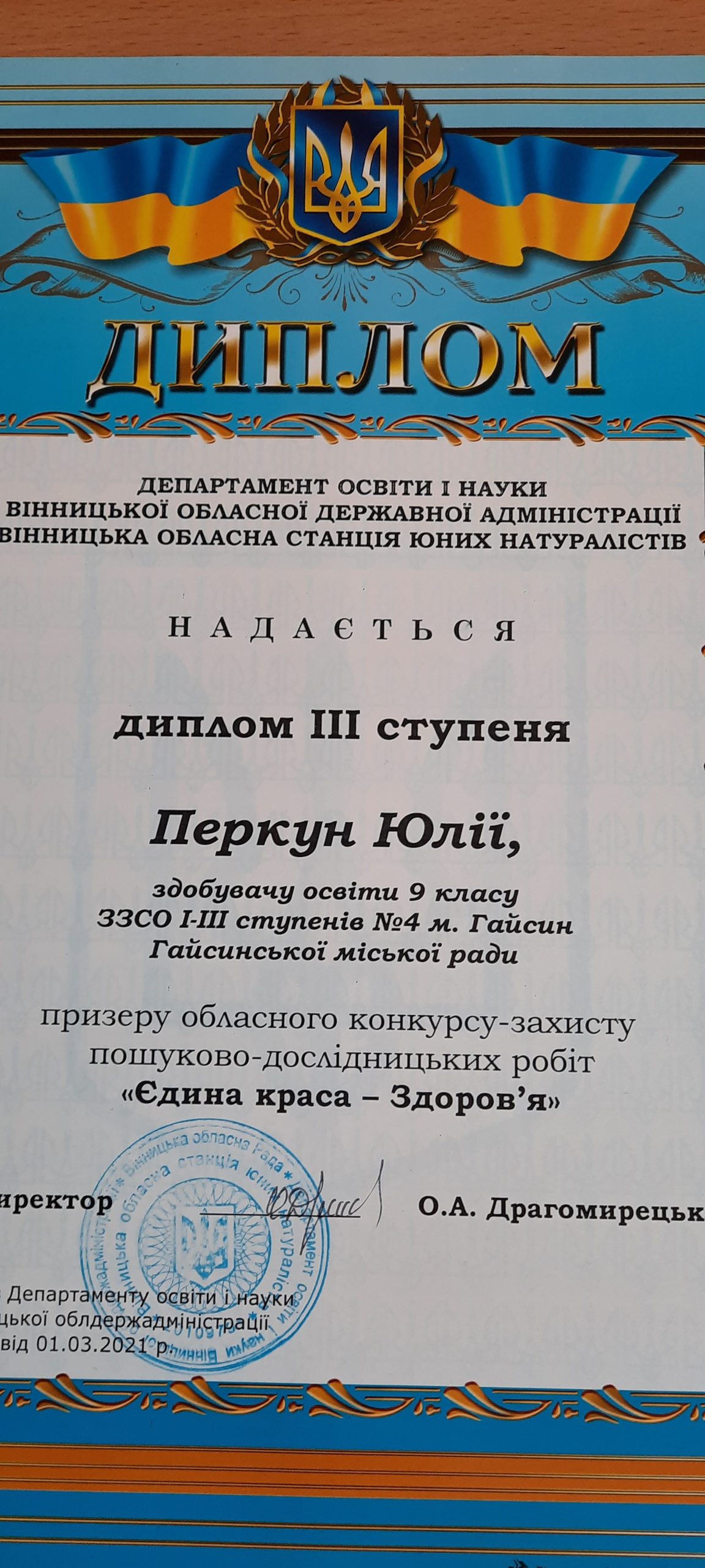 Список здобувачів освіти, зарахованих до 1 класу ЗЗСО І-ІІІ ступенів №4 м. Гайсин Гайсинської міської ради