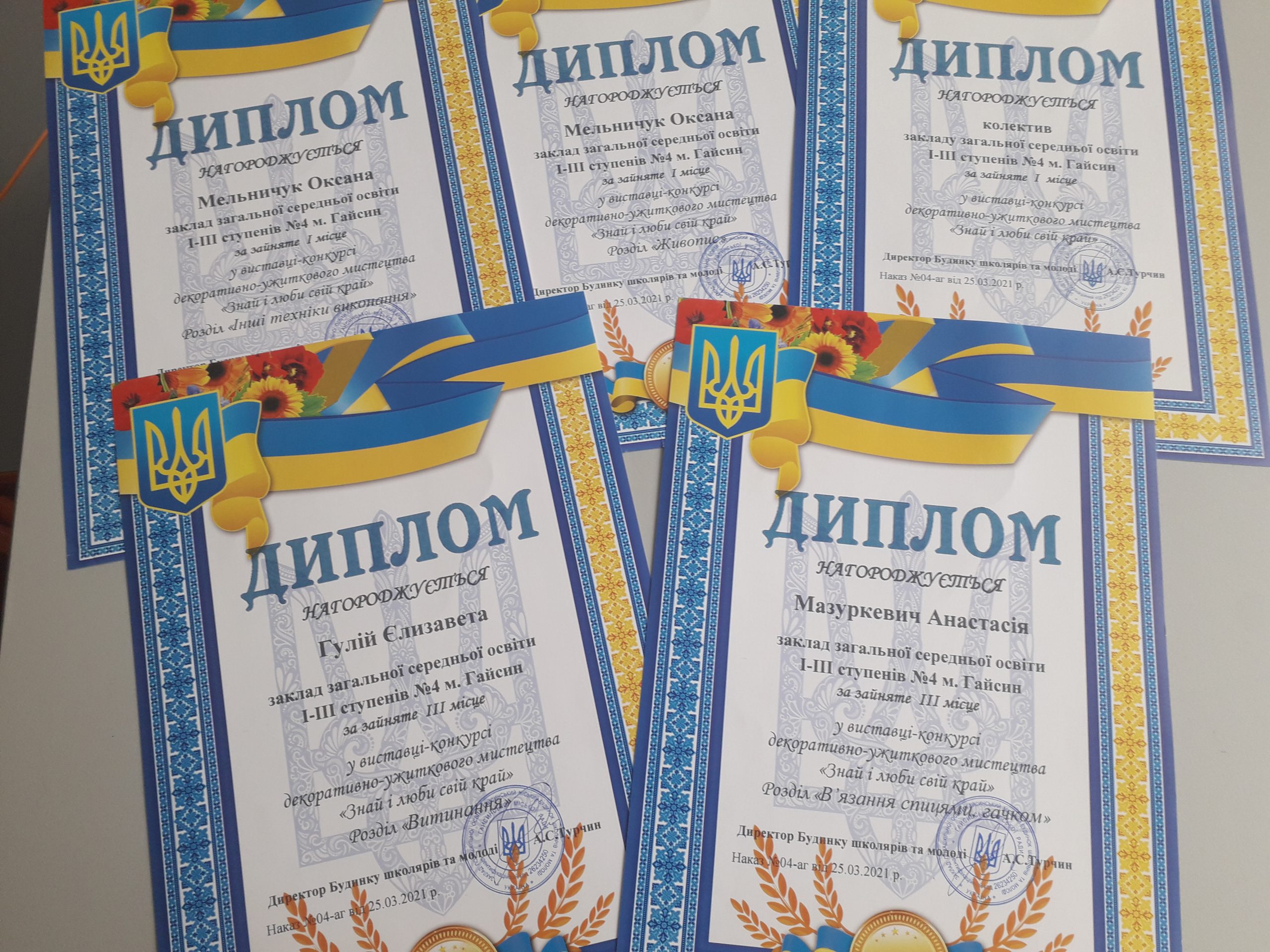 Список здобувачів освіти, зарахованих до 1 класу ЗЗСО І-ІІІ ступенів №4 м. Гайсин Гайсинської міської ради