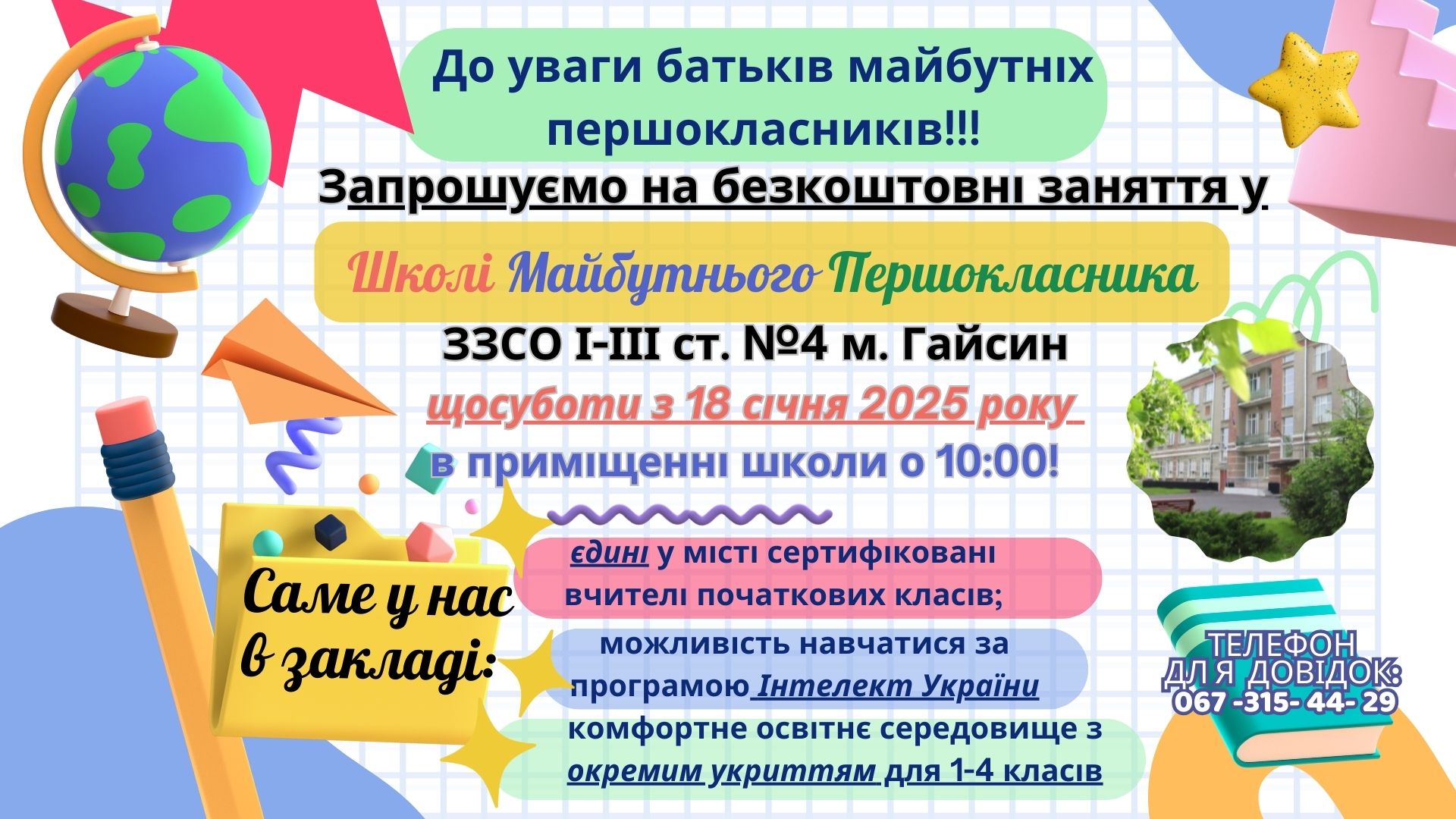 до уваги батьків майбуніх першокласників (2) Posted on 9 Січ 20259 Січ 2025 by Костенко Ольга ← Previous Next →