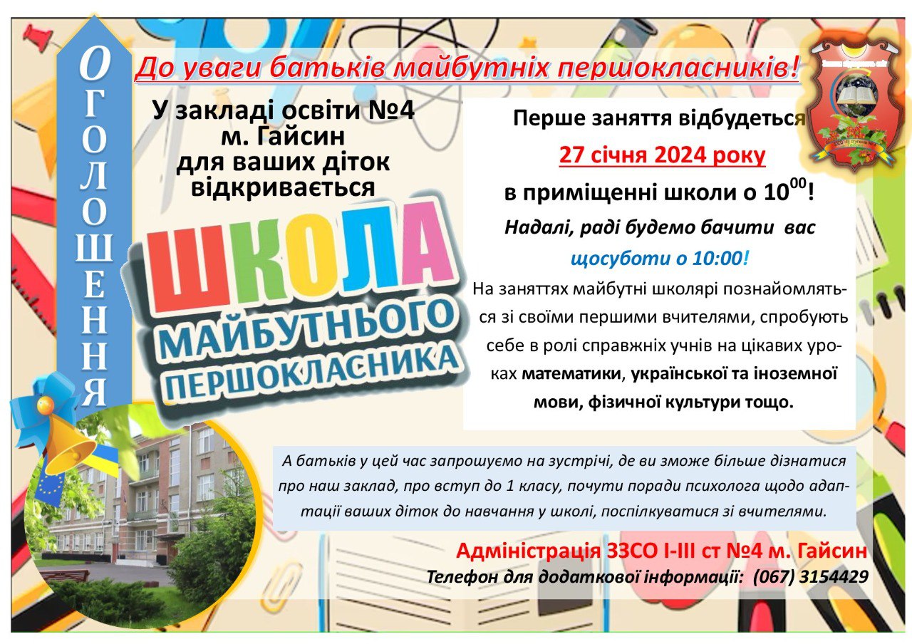 Список здобувачів освіти, зарахованих до 1 класу ЗЗСО І-ІІІ ступенів №4 м. Гайсин Гайсинської міської ради
